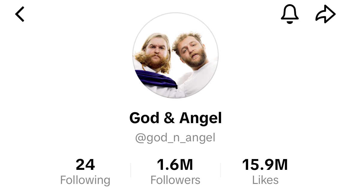 The Tok: @god_n_angel | 1.6M followers | 15.9M likes | Top Video: 21.3M views, 3M likes